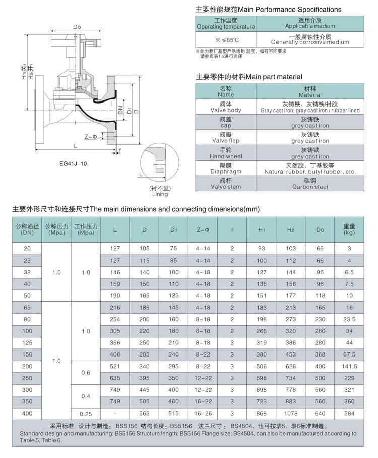 EG41J 英標襯膠隔膜閥性能規(guī)范: