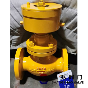 氣動(dòng)切斷閥由多彈簧氣動(dòng)薄膜執(zhí)行機(jī)構(gòu)或浮動(dòng)式活塞執(zhí)行機(jī)構(gòu)與調(diào)節(jié)閥組成,電磁閥線圈可接收泄露儀器的信號(hào),控制工藝管道內(nèi)流體的切斷、接通或切換。切斷閥內(nèi)結(jié)構(gòu)裝有低熔點(diǎn)(易熔合金)的塞子,在出現(xiàn)事故時(shí)因溫度升增高易熔化泄壓來(lái)迅速關(guān)閉貯罐的出入口來(lái)保證貯罐系統(tǒng)的安全。氣缸開(kāi)啟壓力為≥0.3-0.6Mpa,氣缸的日常工作壓力,不得低于0.4MPa,保證閥門(mén)的正常工作。