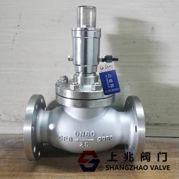 緊急切斷閥配有自動(dòng)易熔塞切斷裝置。當(dāng)環(huán)境溫度達(dá)到70±5℃時(shí),易熔合金熔化,氣缸卸壓,氣體液壓切斷閥自動(dòng)關(guān)閉。