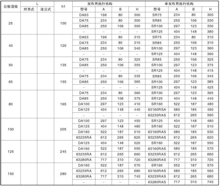 | 型 式 | DA、SR、RA、RAS單作用、雙作用活塞式執(zhí)行機(jī)構(gòu) |
