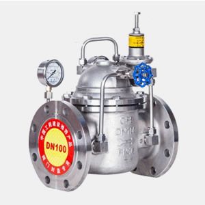 本系列減壓閥屬于先導(dǎo)活塞式不銹鋼減壓閥。由主閥和導(dǎo)閥兩部分組成。主閥主要由閥座、主閥盤、活塞、彈簧等零件組成。導(dǎo)閥主要由閥座、閥瓣、膜片、彈簧、調(diào)節(jié)彈簧等零件組成。通過調(diào)節(jié)調(diào)節(jié)彈簧壓力設(shè)定出口壓力、利用膜片傳感出口壓力變化,通過導(dǎo)閥啟閉驅(qū)動(dòng)活塞調(diào)節(jié)主閥節(jié)流部位過流面積的大小,實(shí)現(xiàn)減壓穩(wěn)壓功能。